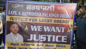 जालंधर -(मनदीप कौर)-आम आदमी पार्टी के नेता आम आदमी पार्टी से जुड़े लक्की ओबराय हत्याकांड में आज उस समय नया मोड़ आ गया, जब काफी दिनों बाद मुख्य आरोपी की गिरफ्तारी और न्याय की मांग को लेकर शहर में कैंडल मार्च निकाला गया। इस दौरान आक्रोशित लोगों ने पुलिस प्रशासन पर सीधे तौर पर संरक्षण देने के आरोप लगाए।